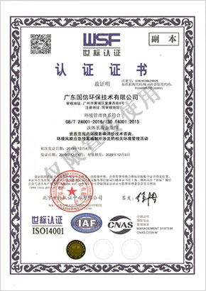 ISO14001環境管理體系認證證書